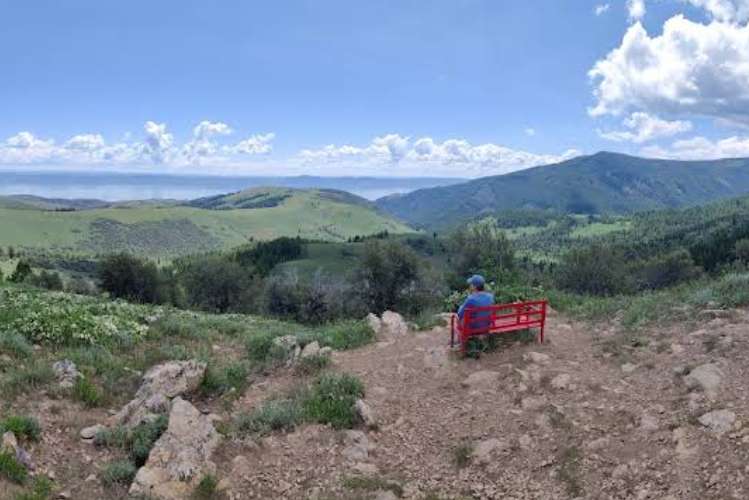 The Pink Bench Overlook is a scenic viewpoint located in Fish Haven, Idaho, offering panoramic views of Bear Lake and the surrounding Fish Haven Canyon. It is a simple, non-fancy spot featuring a lone pink-painted bench perched on a hillside.